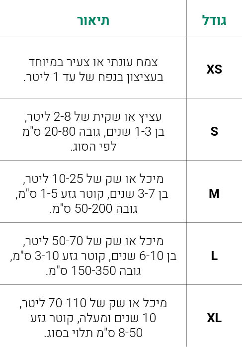 | אזורי גידול | מתאים למישור החוף, השפלה ולהר הנמוך |